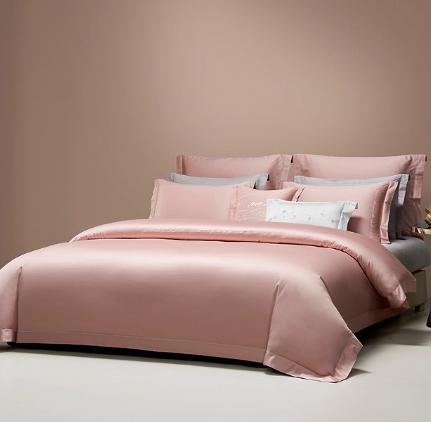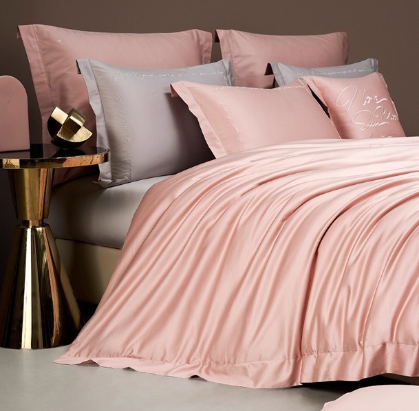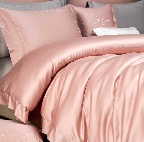 長絨棉繡花四件套裝:日月與卿(戀愛粉)